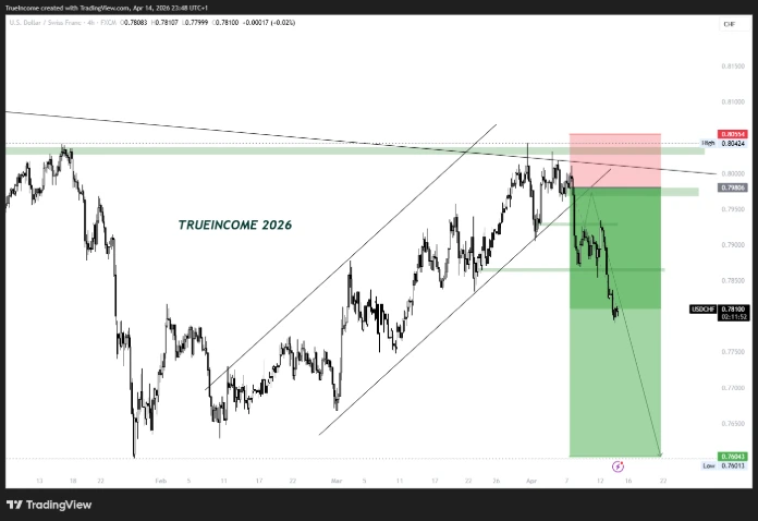 USDCHF bearish rejection and breakdown – TrueIncome Analysis